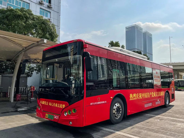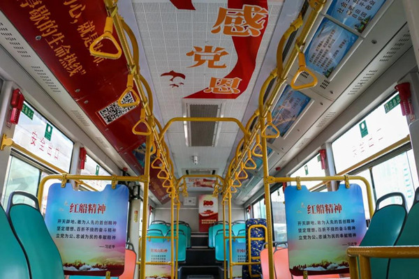 “永遠(yuǎn)跟黨走、同心共乘去追夢(mèng)”公交主題專線選用25路線全線30輛公交車進(jìn)行打造,車身外觀以紅色為主色調(diào),融入建黨100周年圖標(biāo)和“奮斗百年路、啟航新征程”“學(xué)黨史、悟思想、辦實(shí)事、開(kāi)新局”等宣傳標(biāo)語(yǔ),營(yíng)造出建黨100周年和黨史學(xué)習(xí)的濃厚氛圍。