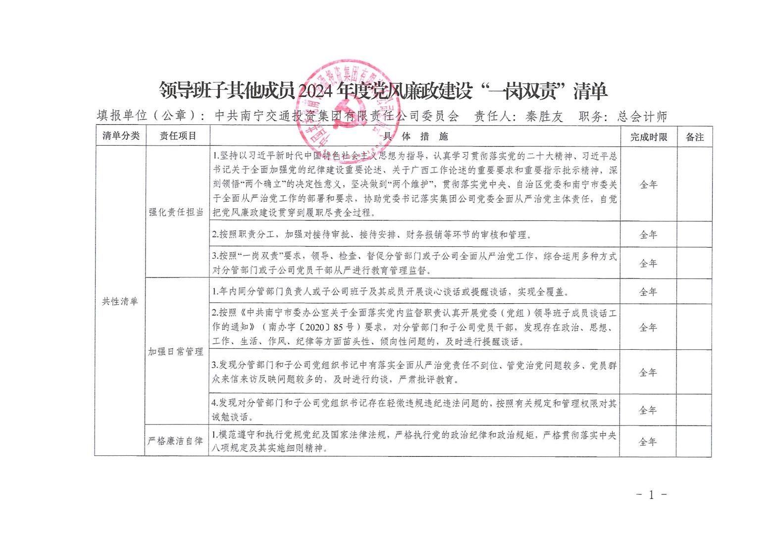 領(lǐng)導(dǎo)班子其他成員2024年度黨風(fēng)廉政建設(shè)“一崗雙責(zé)”清單(六)