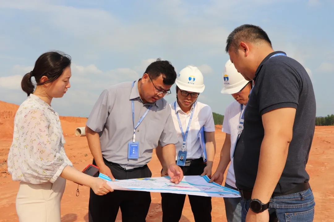 為進(jìn)一步推進(jìn)項(xiàng)目建設(shè),解決存在的問(wèn)題,5月12日下午,集團(tuán)公司黨委書記、董事長(zhǎng)、總經(jīng)理?xiàng)顫i帶領(lǐng)交投園區(qū)公司黨支部書記、董事長(zhǎng)陳海華,投資發(fā)展部、項(xiàng)目部及項(xiàng)目參建單位的有關(guān)人員到項(xiàng)目現(xiàn)場(chǎng)檢查指導(dǎo)工作。