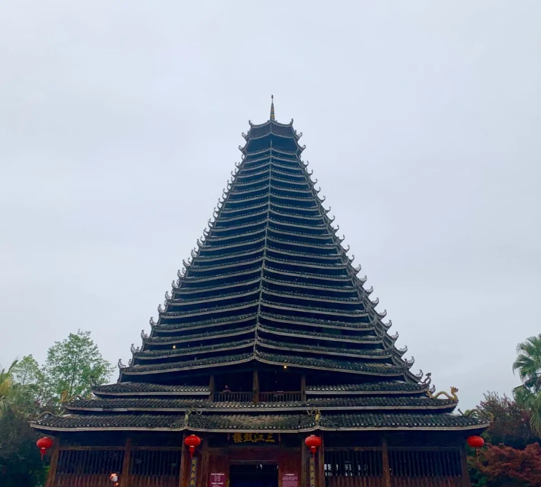 仰觀閃閃魔幻,感受侗族建設的精美藝術(shù),把疏密、粗細、剛?cè)岬韧昝赖亟Y(jié)成一個整體,展現(xiàn)侗族工匠的精美建筑技藝。不用一顆鐵釘,結(jié)構(gòu)十分嚴謹穩(wěn)固。樓內(nèi)四根杉木大柱直徑都超過70厘米,樹齡均在百年以上,這在鼓樓建筑史上是唯一的。