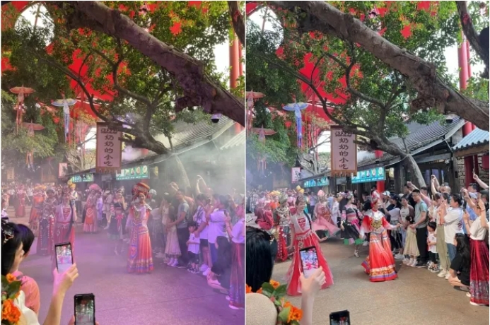 “三月三”是壯族人民傳統(tǒng)的節(jié)日,又稱“歌仙節(jié)”,壯族人以歌來講述事情、表露情感、渲泄情緒?!岸嘀x了,多謝四方眾鄉(xiāng)親,我家沒有好茶飯,只有山歌敬親人呀敬親人……”山歌唱起,銅鼓喧天,一曲敬酒歌充分體現(xiàn)了廣西壯族人民的熱情好客,傳遞了美好的理念與情感。劉三姐與阿牛哥的美好傳說很好地展現(xiàn)了廣西“三月三”的民族風情。