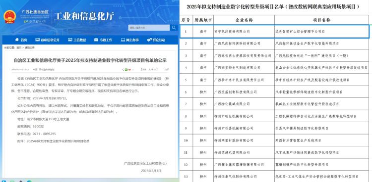 南寧礦業(yè)集團(tuán)“綠色智慧礦山綜合管理平臺(tái)”成功入選自治區(qū)工業(yè)和信息化廳2025年支持制造業(yè)數(shù)字化轉(zhuǎn)型升級(jí)項(xiàng)目